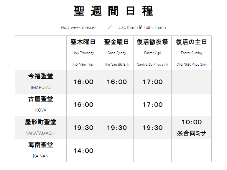 ミサや各種講座の時間など、こちらでご確認ください